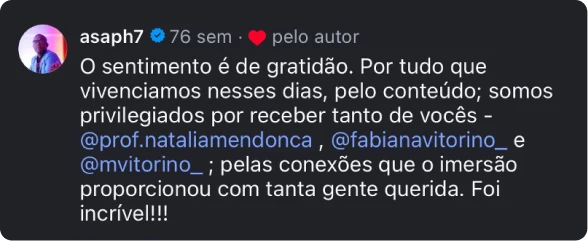 Reconhecendo a qualidade do método e da formação da Academia Vitorino & Mendonça. Hoje na 4ª edição do Imersão.