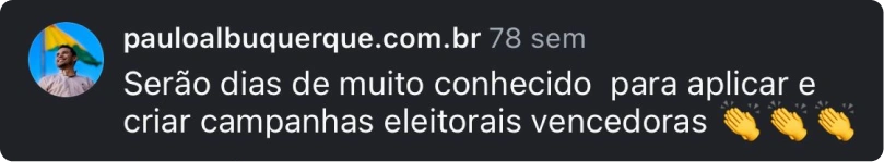 Você aprende estratégias para diferentes perfis de candidato e sai do Imersão Eleições 2026 com um planejamento prático, passo a passo, para guiar o projeto político de hoje até o fim do período eleitoral